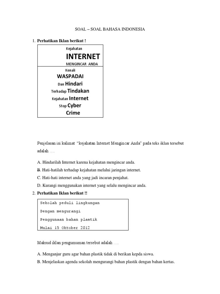 Soal Pengayaan Un Bahasa Indonesia 2015 from image.slidesharecdn.com Check spelling or type a new query. Maybe you would like to learn more about one of these? We did not find results for: Soal pilihan ganda tentang iklan slogan dan poster dan jawabannya.