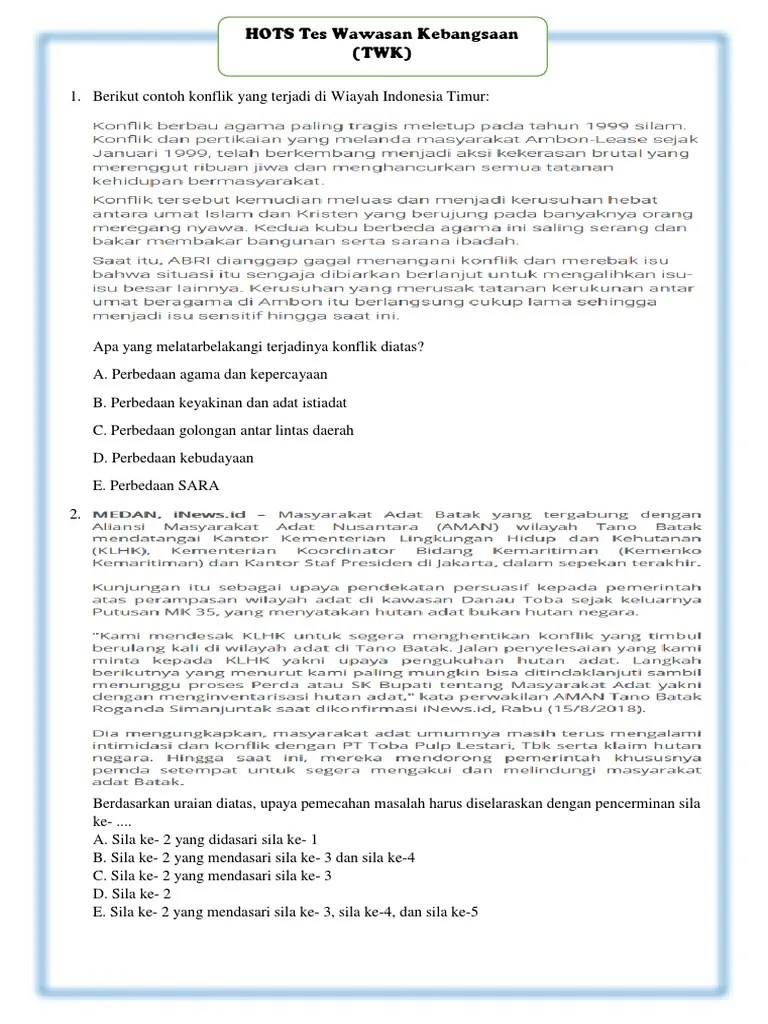 Soal cpns twk tes wawasan kebangsaan dengan topik pancasila merupakan salah satu bagian dari tes kompetensi . Contoh soal tkp yang perlu di bahas by damai1ziliwu. 29+ contoh soal twk hots cpns 2020. Cakupan pembahasan buku ini adalah: Ratusan peserta saat mengikuti tes seleksi cpns 2020 di ruang plumpungan, setda kota salatiga, senin (3/2/2020). · jumlah soal terdiri dari 30 soal twk (tes wawasan kebangsaan) dengan waktu maksimal 30 . ✓ rangkuman materi twk (tes wawancara kebangsaan) . Yuk, biasakan dirimu dengan contoh soal skd cpns tiu, twk, tkp yang berbasis cat agar semakin siap . Seleksi skd cpns 2021 semakin dekat. Buku soal lolos tes cpns & Bocoran soal cpns 2021 twk hots, kumpulan contoh soal serta pembahasan dan link soal pdf twk hots persiapan tes cpns. Pppk diktat akurat bank soal hots. Soni farkhani · new jawab tkp analisa 17.